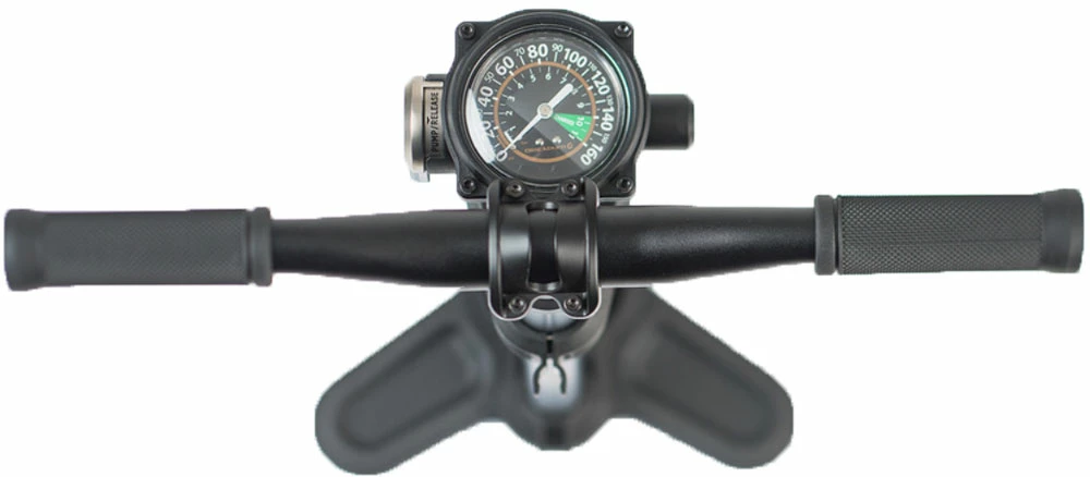 Pompe au sol de grand volume pour les pneus tubeless MTB avec réservoir de pression de 3,4 bars.