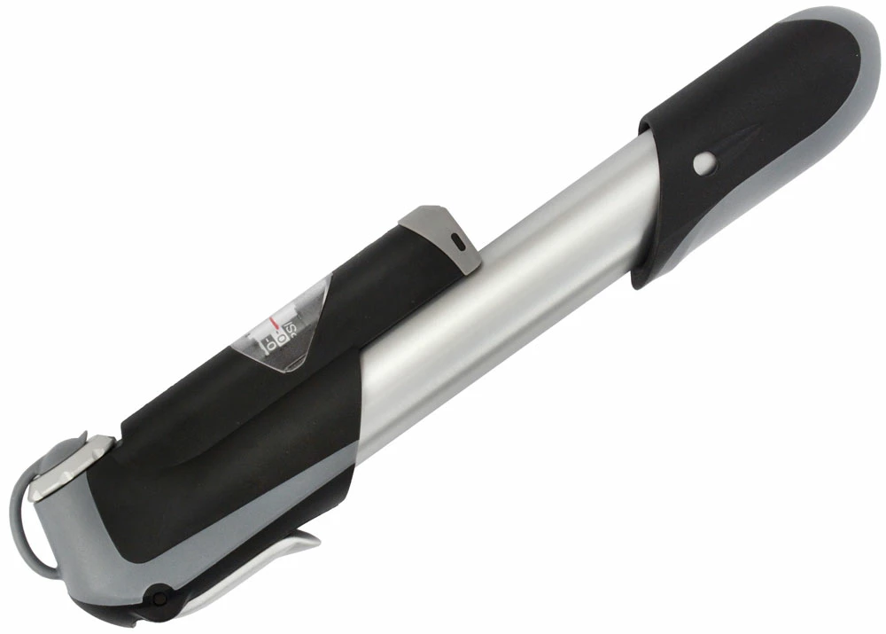 Pompe légère avec manomètre et raccord de valve pour AV et SV. Idéale pour les vélos de randonnée et les VTT – grâce à un grand volume par course. Poignée à l’ergonomie optimale.